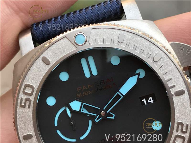 值得一提的是,VS沛納海985采用的是樹脂纖維表帶,做工精細,佩戴舒適貼手與正品提煉自再造PET樹脂的特殊物料藍色表帶設計款式以及材質一致。