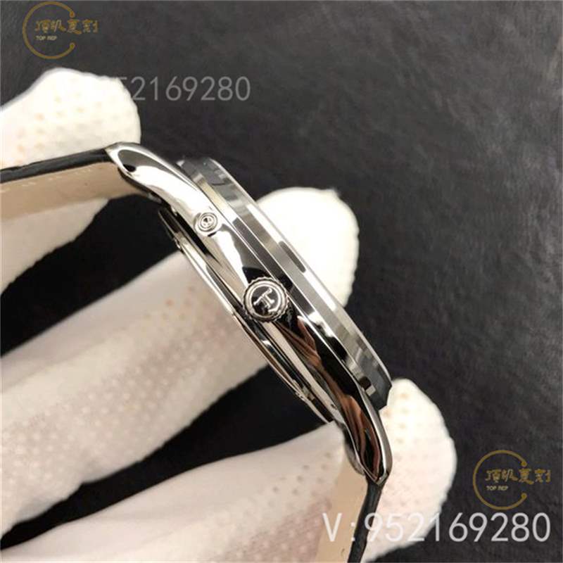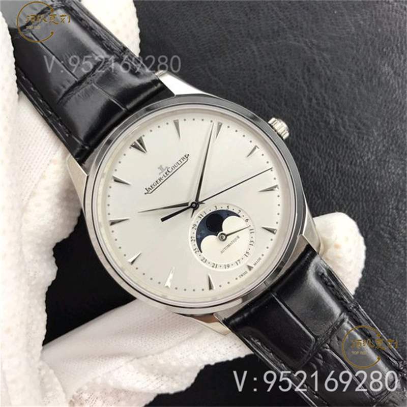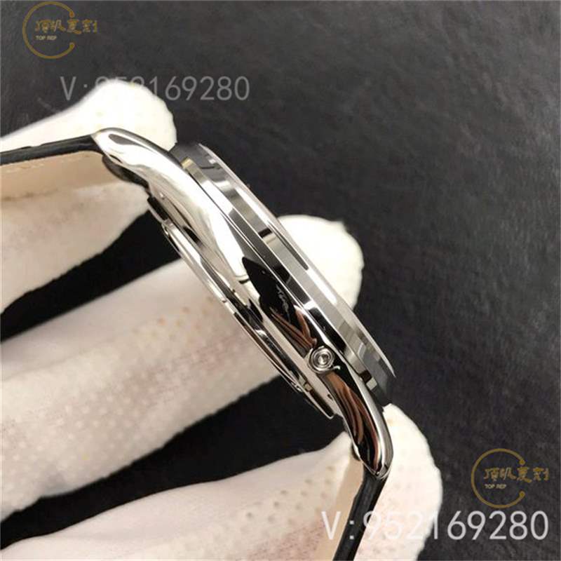 ZF廠積家月相大師系列,表殼直徑39mmX9.9mm與原裝同步。六點(diǎn)鐘的子盤擁有陽歷陰歷(月相)雙期顯示,月相一月轉(zhuǎn)一圈,功能和正品一致。技術(shù)突破:采用9015改積家自產(chǎn)Cal.925/1機(jī)芯,功能百分百同步原裝自產(chǎn)機(jī)芯。走時穩(wěn)定,素質(zhì)堅挺。細(xì)節(jié)突破:從側(cè)面觀察腕表盤面發(fā)現(xiàn)有微微的弧度,ZF為了達(dá)到這一效果,耗時費(fèi)力多次調(diào)整模具,確保神韻和感覺能與原裝相媲美。ZF積家月相大師,滿足您對月相的一切美好情懷。