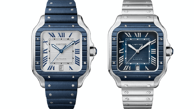 今年除了Santos-Dumont之外,Santos也有藍色版本的新呈現,面盤和表圈都做了藍色處理,是滿耳目一新的改動。
