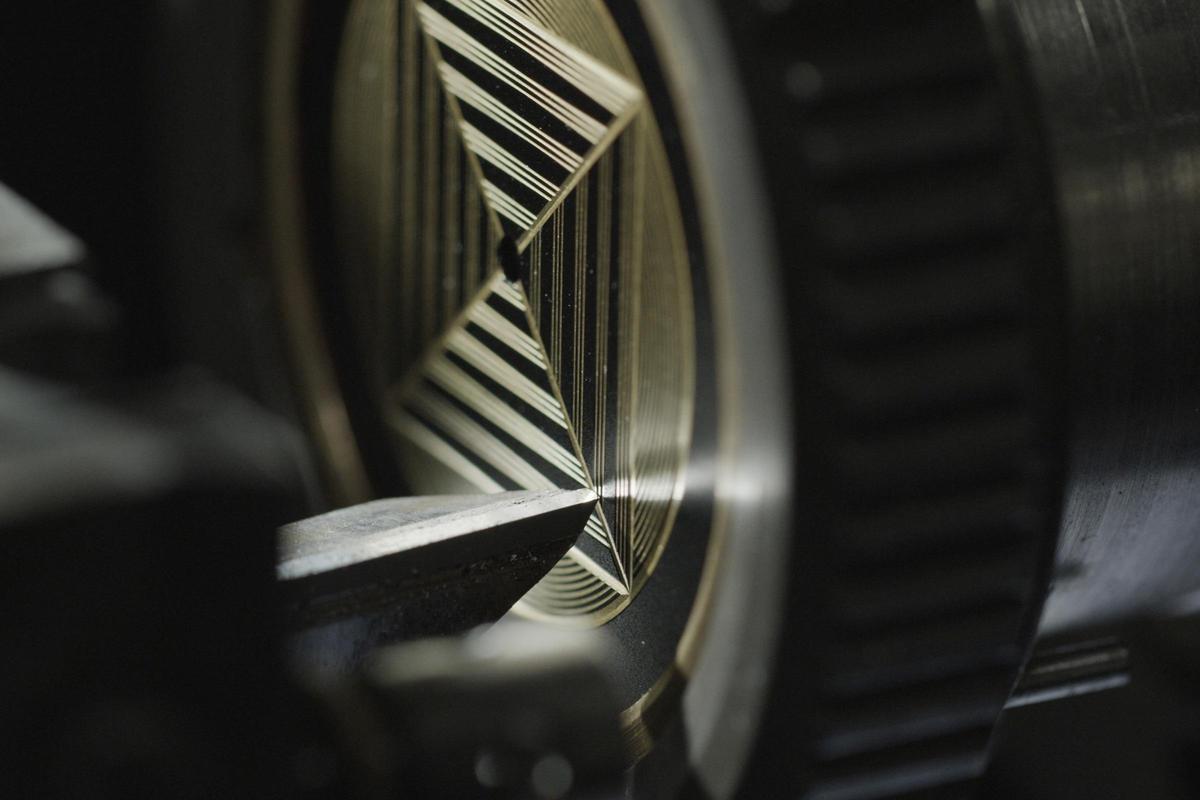 機(jī)刻雕花(Guilloché)是鐘表中非常傳統(tǒng)的技法,是一種將重復(fù)性圖案的紋路刻在面盤上的工藝,藉由人手操作專屬的車床,在面盤上小心翼翼的刻出重復(fù)的線條,最終形成一幅特殊的圖案。傳統(tǒng)的機(jī)刻雕花有近80種樣式,透過不同樣式的排列組合,創(chuàng)作出各不相同的畫面。