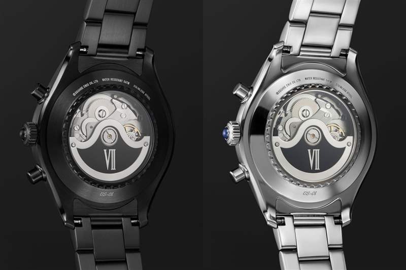 兩件均飾有黑色 DLC 和鋼制擺陀,帶有加長的羅馬數字 7,以及展示底蓋邊緣的區域特定序列號。機芯本身是堅固的精工自動機芯,具有 45 小時動力儲存。