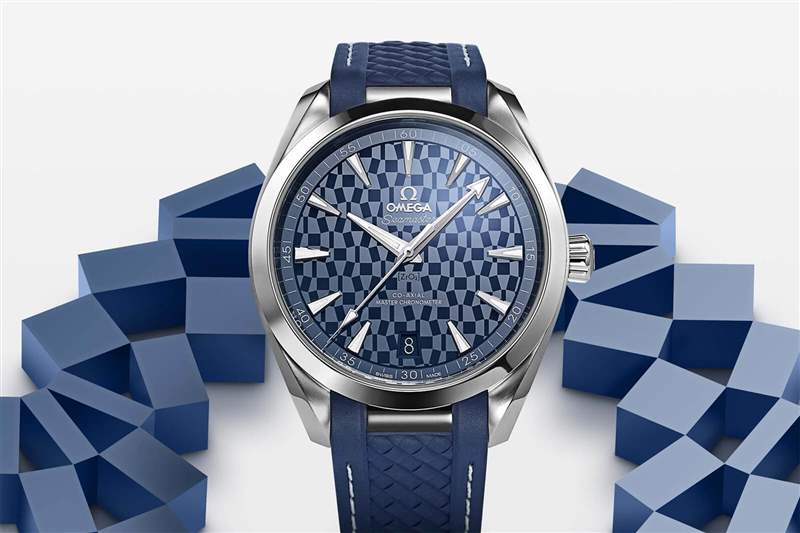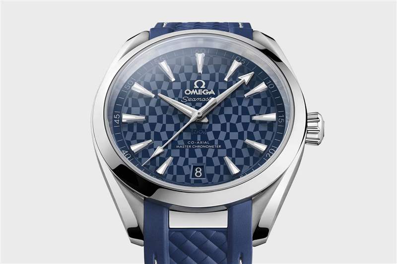 這款全新限量版以引人注目的全新表盤彰顯其與眾不同之處。表盤由藍色陶瓷制成,激光鐫刻東京 2020 標志,啞光和拋光幾何形狀交替出現(xiàn)。它看起來有點像被攪動的水底下的游泳池底部,既適合奧運會,也適合 Aqua Terra。