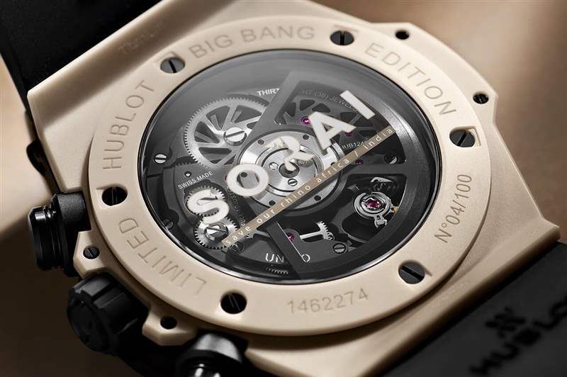 Big Bang Unico SORAI 限量 100 枚,是眾多環(huán)保手表之一,但這并不能阻止它成為一個(gè)偉大的事業(yè)。憑借其引人注目的陶瓷表殼、鏤空表盤和純粹的尺寸,它是拯救犀牛的狂熱倡導(dǎo)者之一。