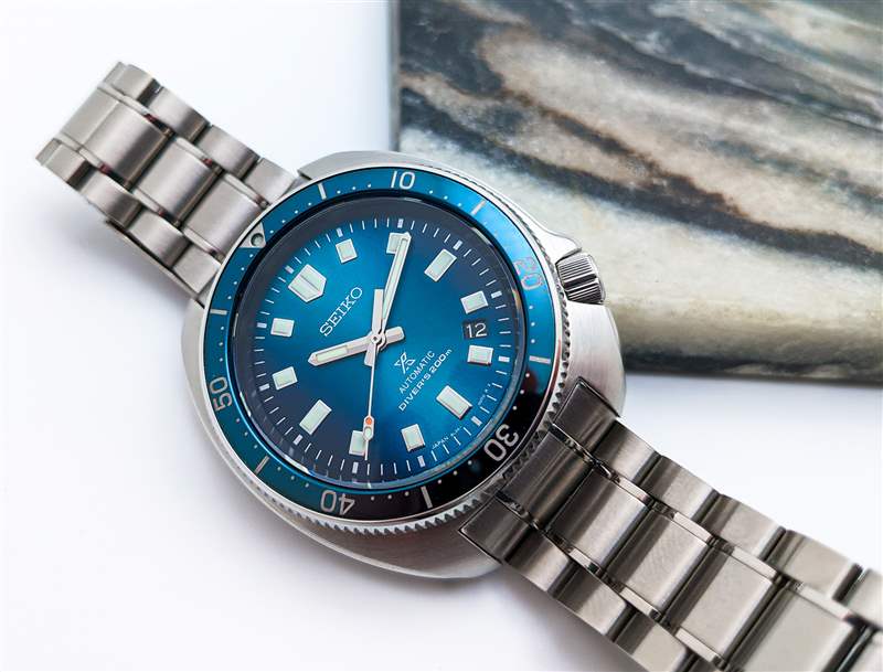 Seiko 因其在其整個型號系列中打造極具吸引力的表盤而享有盛譽,但即使按照該品牌自己的標準,Prospex SLA063 的表盤也是真正的佼佼者。SLA063 的調色板旨在喚起北極光的發光、空靈的色彩,立即將自己從 Prospex 系列的其他產品中脫穎而出,這種動態外觀是多級精加工工藝的結果。首先,該品牌在這里使用了一種非正統的漸變效果,表盤的邊緣在 3 點鐘和 9 點鐘位置漸變為深午夜藍色,與從 12 點鐘方向延伸至 6 點鐘方向的較亮條紋形成鮮明對比。接下來是經典的旭日形效果,具有適度的顆粒感和寬廣的動態范圍。在此之上,精工在表盤表面添加了淡淡的波紋紋理,這有助于在視覺上柔化旭日紋理的邊緣,使其更像北極光的幽靈般纖細的外觀。當然,最引人注目的元素是表盤顏色本身。這種豐富、細膩的藍色色調在不斷變化的光線下顯示出多種多樣的陰影變化和底色,從近乎黑色到鈷藍色、綠松石色,甚至淡綠色。這是一種閃閃發光、復雜的色調組合,很難在相機上捕捉到,但在實踐中立即引人注目。這種對細微差別的承諾也延伸到 SLA063 的表盤文字和外部分鐘軌道,采用精致的金屬銀色印刷呈現,為手腕上的表盤增添了額外的光彩。表盤布局本身的其余部分大多遵循熟悉的“Willard”圖案,忠實再現矩形應用索引,6105 獨特的指揮棒聽筒和一眼就能認出的“紅綠燈”秒針上的變化。精工將 SLA063 的日期窗口移至 4:30 位置的決定可能會引起爭議,但這種偏離中心的位置有助于在視覺上保留索引的布局,而黑色日期輪則讓這個元素在看時或多或少地消失撥號。