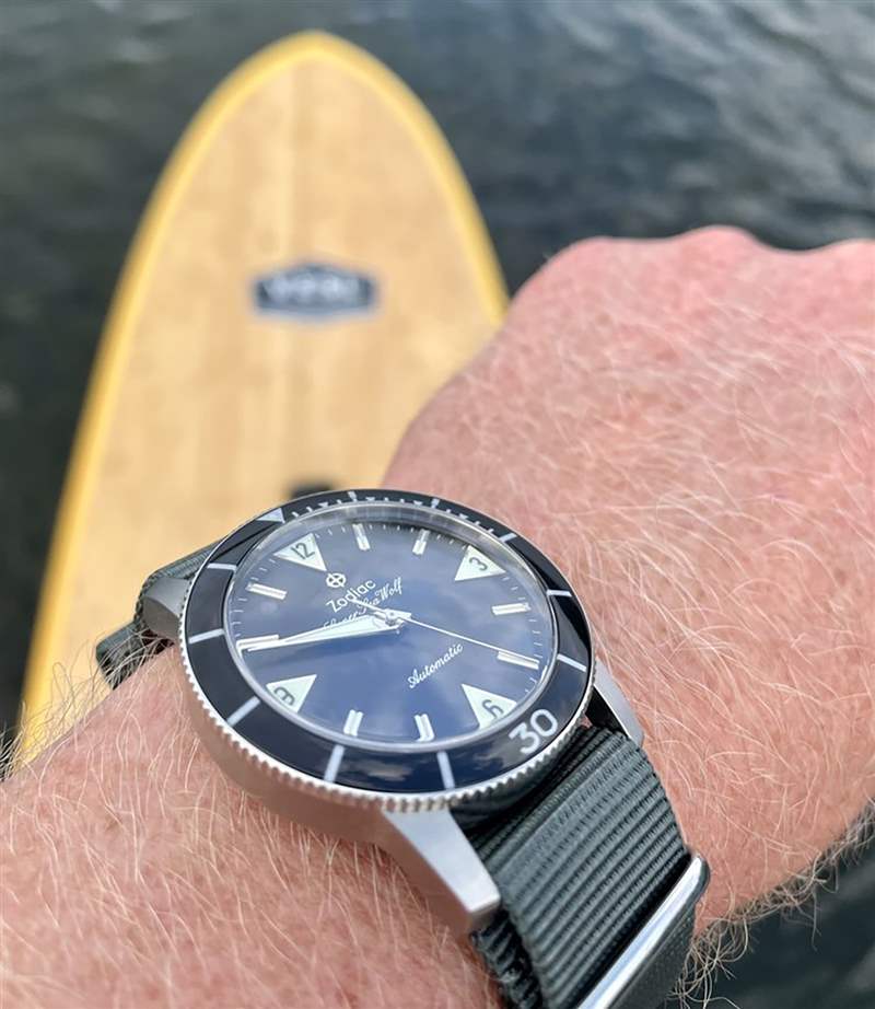 ZO9209 基于越南戰爭期間在美國和東南亞的軍事郵政交易所 (PX) 銷售的型號。美國服役人員開始相信 Zodiac 時計的制造質量和可靠性,在中部高地和湄公河三角洲這樣多樣化和令人生畏的地區,這說明了一些事情。由于其功能強大且堅固耐用的設計,該設計在越南流行起來。Zodiac 在越南戰爭期間的能力和可靠性為其贏得了堅定的聲譽。它的傳統,加上現代設計和制造工藝,使它成為 T 的輕松選擇,而這個決定很快就影響了我們其余的手表收藏之旅。快進幾個月,T 已經完成了 ZO9209(這東西需要一個昵稱;稍后會詳細介紹)。T從美國機房拿走了ZO9209 海軍艦艇前往沙橋沖浪,超級海狼號迎接所有挑戰。它已成為他的首選時計。