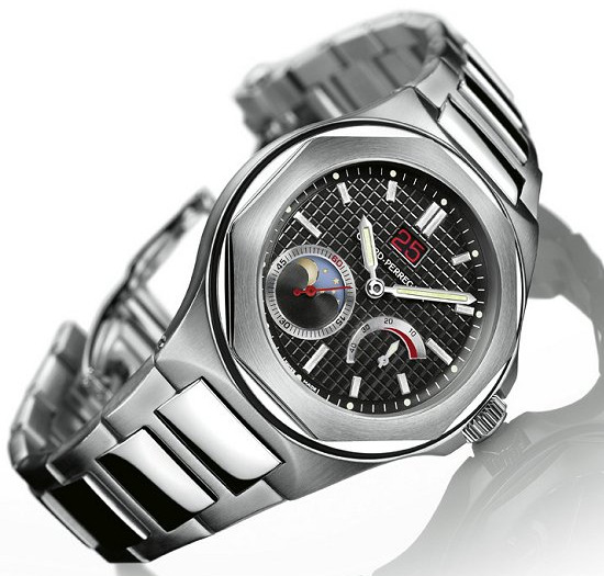 44毫米寬的精鋼表殼有一個八角形的表圈,看起來有點像經典的杰拉爾德·根塔設計(AP皇家橡樹,百達翡麗鸚鵡螺等……表盤設計也讓我想起了這些經典設計。金屬手鐲也是如此!外觀很好看,沒有怪異。如果我正確預測這一事實,Laureato手表具有“在你身上成長”的吸引力。我特別喜歡這款Sport Classique Laureato Evo 3大日歷手表提供的混合功能。只是運動手表的獨特組合和布局。自制的GP芝柏表自動機械機芯具有時間、小秒針、大日期顯示、月相顯示和動力儲存指示器。布局平衡良好,功能齊全。這是一款非常精致的運動型手表,盡管它是瑞士手表,但具有意大利風情。