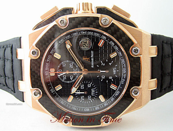 44-45毫米寬的表殼采用鈦金屬或精鋼制成,是在“碳纖維”時代(我稱之為碳纖維)制造的。就表殼尺寸而言,我不完全確定,但我認為黃金型號比鈦金屬型號大一點。頂部和側面的表圈都很好地鑲嵌了碳纖維。這也適用于手表側面的計時按鈕外殼。該表款的計時按鈕最初看起來像油門踏板,但后來被使用得太多,以至于忘記了它們最初的主題。我喜歡鱷魚皮表帶上的編織縫線。應該看起來像賽車服,但(尤其是在鈦合金模型上)讓我想起了蜘蛛俠的網。我相信皇冠看起來有點像F1賽車的氣帽。