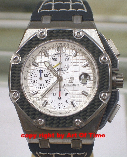 Royal Oak Offhsore Juan Pablo Montoya 有兩款鋼金或金製作。我相信它出現在2002年,當時蒙托亞先生在F1賽場上表現很快。請注意,這是最受追捧的愛彼限量版一級方程式腕表。實際上,這是皇家橡樹離岸最具收藏價值的限量版作品之一?;旧希@意味著它是為數不多的可用產品之一,價格高于大約 1 年前的零售價格。鈦金屬8枚,玫瑰金1000枚。賽車手的名字聽起來像是毒梟,這絕非巧合。他畢竟是哥倫比亞人。如果我有其中一塊手表,我會讓人們認為美聯社為南美一個非常特別、非常有說服力的客戶制作了它。手表計時指針采用哥倫比亞國旗的顏色,標準的“巨型tapisserie”表盤紋理有一個有趣的變化。在中間,圖案變為看起來像賽道曲線,有點像旗幟,或者可能是Microsoft Windows徽標(肯定是后者)。
