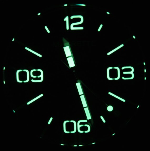 馬格萊特表殼形狀和表盤設(shè)計是沛納海和Anonimo的松散產(chǎn)品,仍然表現(xiàn)良好。馬格萊特在表盤上使用高度圓頂?shù)乃{(lán)寶石水晶玻璃。雖然易讀性在那里,但從角度看時確實(shí)會產(chǎn)生一些眩光和失真。我對Magrete的建議是,將來嘗試更多的AR(抗反射)應(yīng)用和可能有助于減少眩光的晶體。不過,我應(yīng)該補(bǔ)充一點(diǎn),直視手表時,易讀性根本不受影響。