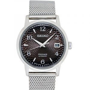 要在有限的預算內選擇一枚大方得體的手表,精工表會是一個實而不華之選。此表屬于Presage系列,可算是Seiko中最能展現日本制表工藝的系列。此款男裝手表采用網狀精鋼表鏈,圓形表殼置有眩目的深啡色花網紋表盤,襯以銀色時標及指針,澄明而雅致。