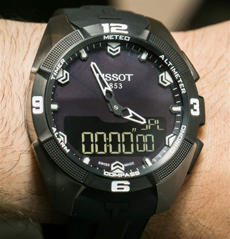 毫無疑問,您會注意到表盤的新 LCD 屏幕部分要大得多,并且與表盤齊平(相比之下,舊型號的屏幕要低一些)。負液晶顯示器也有更亮的指示器。平面設計看起來非常漂亮,有助于將顯示屏更多地放在臉部的主要部分。在功能上,天梭提到原始 T-Touch 的幾乎所有東西都在這里,以及后來型號的一些功能,例如帆船賽功能以及計時碼表的圈數計數器。當 T-Touch Expert Solar 在不久的將來最終發布時,我們將能夠列出最終功能。