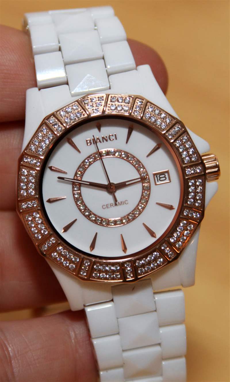這兩款手表是 Bianci White Ceramic ref. RB-B293L 和 Bianci 9084L(這顯然屬于 Prestigio 系列。”我想我要給我的第一個兒子取名“Prestigio……”陶瓷表殼手表繼續流行,這是有充分理由的。有一塊閃亮的白色手表永遠不會弄臟或劃傷是一件好事。我的意思是為什么人們通常不買白色的東西?因為它們會變臟,對吧?白色陶瓷模型有幾種款式,包括這款帶有玫瑰金色調和閃閃發光的款式元素。廣告留言廣告信息結束
