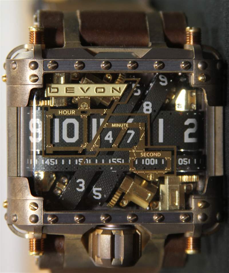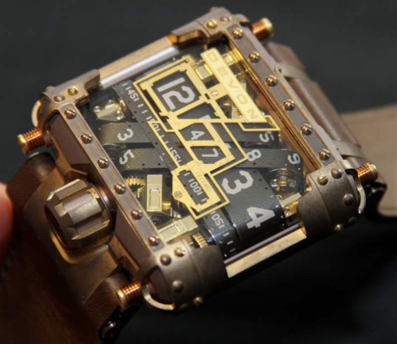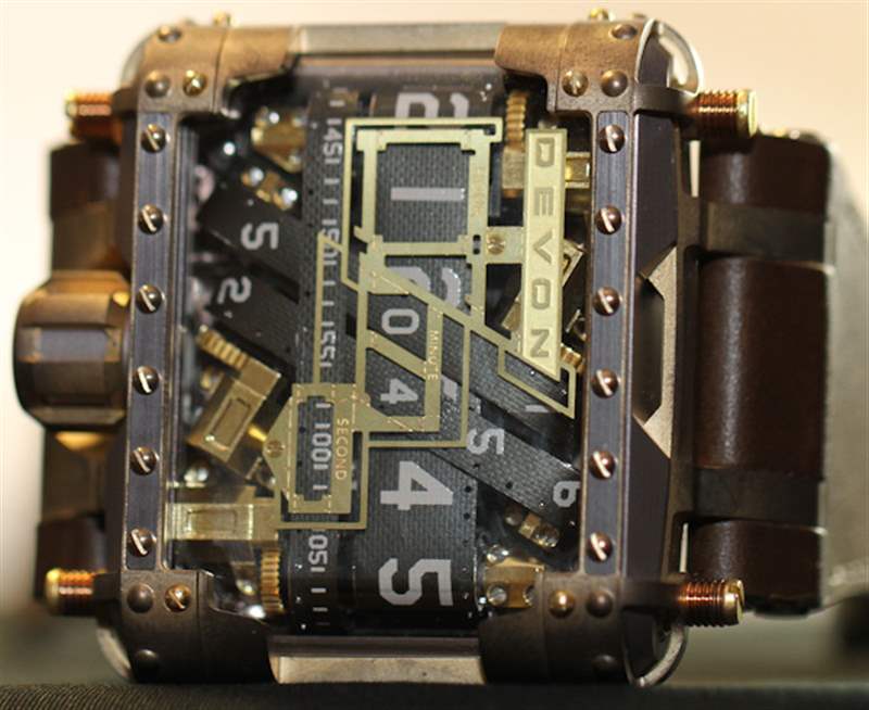 Tread 1 Steampunk 概念中沒有出現(xiàn)的一個(gè)元素是皮帶上數(shù)字的不同顏色。Devon 應(yīng)該使用與青銅色和棕色相匹配的棕褐色。也許它不夠清晰。帶有白色文字的黑帶仍然適合我。盡管使用棕色腰帶可能會(huì)讓人覺得腰帶是由皮革或類似材料制成的外觀會(huì)很有趣。Devon 所做的是改變內(nèi)部機(jī)械的顏色,使它們具有黃銅飾面,而不是拋光鋼外觀。我認(rèn)為這是一個(gè)很好的接觸,并且在整個(gè)運(yùn)動(dòng)機(jī)制中使用。
