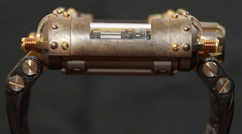然而,這款手表確實(shí)包含很多螺絲——主要是裝飾性的。蒸汽朋克美學(xué)源于儒勒·凡爾納式科幻小說和工業(yè)革命時(shí)代技術(shù)與機(jī)械的混合。大多數(shù)人認(rèn)為它是復(fù)古未來主義的,我不得不承認(rèn)它有很多很酷。蒸汽朋克創(chuàng)作的一個(gè)標(biāo)志是“古老”的外觀,看起來不是全新的。這實(shí)際上就是為什么青銅在某些手表中成為一種時(shí)尚材料的原因。Tread 1 蒸汽朋克大量使用它來打造令人信服的復(fù)古外觀——這實(shí)際上具有迷人的諷刺意味,因?yàn)?Tread 1 的內(nèi)部結(jié)構(gòu)完全現(xiàn)代。沒有“真正的”蒸汽朋克物品會(huì)有計(jì)算機(jī)化的微控制器!