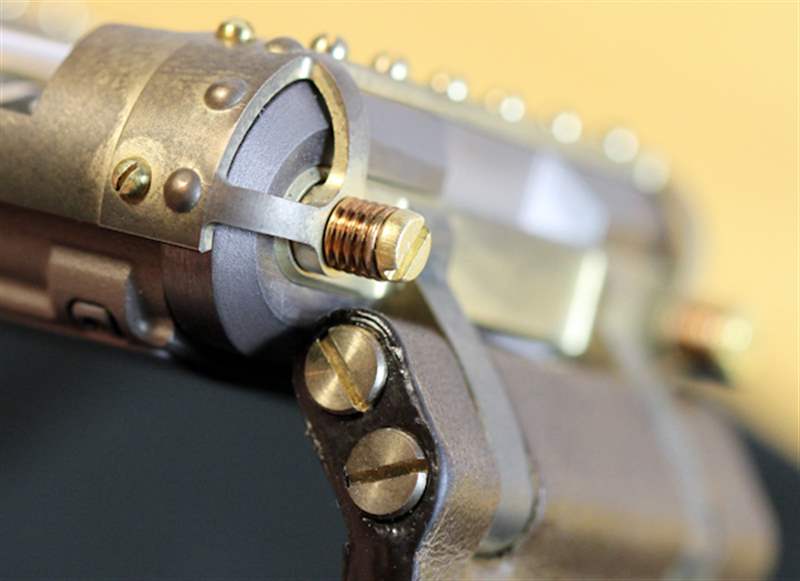 Tread 1 Steampunk 上的設(shè)計(jì)元素本質(zhì)上是原始表殼上的“裝甲覆層”。這包括青銅板和螺絲。我首先在這里寫了關(guān)于 Devon Tread 1 Steampunk 手表的文章,展示了設(shè)計(jì)的渲染圖。您可以看到最終版本略有不同,但并非完全不同。“Frankenstein’s Monster”琴頸螺絲還在那里,看起來非常自豪。實(shí)際上觸摸起來不太鋒利。我最喜歡的裝飾是表殼周圍的螺絲鉚釘和青銅表面形成的銅綠。隨著時(shí)間的推移,這種銅綠會(huì)繼續(xù)發(fā)展,并略微改變手表的外觀。鐵桿收藏家喜歡這些東西。