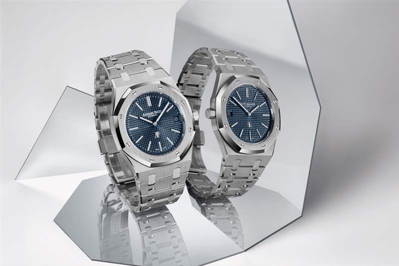 37mm尺寸型號也迎來新一代表款,一眾新表在保留1972年原創設計之余,表殼、表盤及表帶稍稍微調設計。主要改動包括表殼上下方的斜面加大,令整體比例達至更佳的效果,同時增強手工緞面打磨與亮面拋光互相輝映的光影效果。與表殼一體成型的表帶也重新設計,首四個鏈節從平行四邊形改為梯形,表帶寬度逐步遞減,令線條更優美;所有鏈節也造得更纖薄,令表帶更輕盈,最后將底蓋進一步整合到表殼中,令佩戴起來服貼舒適,更貼合手腕弧度。全新的Royal Oak Selfwinding 37mm備有「云夜藍50」面、白面、灰面,以及近來大熱的冰藍面。