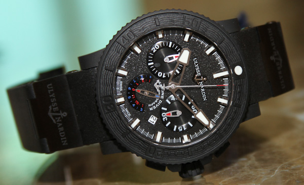 這款手表被稱為 Black Sea Chronograph,作為一款潛水表,防水深度達(dá) 200 米,帶有旋轉(zhuǎn)潛水表圈。雖然很少有人真的帶著這樣的手表去水下,但表盤確實(shí)以大膽的指針和小時(shí)指示器代表了實(shí)用主義主題。令人驚訝的一件事似乎是骨架化的手。最近我注意到個(gè)人非常不喜歡骷髏手。主要是因?yàn)樗鼈兺ǔ3耸棺x取表盤變得更加困難外沒有任何作用。設(shè)計(jì)師使用它們有兩個(gè)原因。首先是出于實(shí)際原因,使指針下方的表盤更加可見。這是有道理的,而且通常是在易讀性與能夠更多時(shí)間查看表盤信息之間進(jìn)行權(quán)衡。第二個(gè)原因純粹是為了設(shè)計(jì)。這個(gè)我討厭。這是設(shè)計(jì)師認(rèn)為鏤空手在 CAD 繪圖和計(jì)算機(jī)渲染中看起來很酷的時(shí)候。他們可能不在乎它會(huì)使實(shí)際手表的實(shí)用水平降低幾步——不知道與計(jì)算機(jī)圖像相比,用于制作表盤和指針的材料會(huì)極大地影響它在現(xiàn)實(shí)生活中的外觀。當(dāng)您需要查看表盤上的指針下方?jīng)]有任何內(nèi)容時(shí),這尤其糟糕。遠(yuǎn)離那些手表。在這種情況下,Ulysse Nardin 采取了更為實(shí)用的方法。指針采用鏤空設(shè)計(jì),以便在更多時(shí)間查看計(jì)時(shí)碼表小表盤。這是因?yàn)槭终娴暮芘帧R虼耍m然它們是骨架化的,但涂有脂肪 lume 涂層的尖端足夠大,可以很容易地看到。廣告留言廣告信息結(jié)束