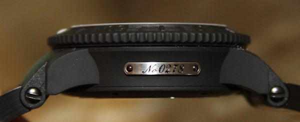 Black Sea Chronograph 表殼寬 45.8 毫米,但由于表圈較厚,佩戴起來比看起來要小一些。您可以看到表盤具有類似沙子的質(zhì)感,并且表面也有紅色和藍(lán)色的飛濺。雖然這款手表的名字是黑海計(jì)時(shí)碼表,但雅典表提醒您,這肯定是其 Marine Diver 系列的一部分,就在表盤上,作為外觀獨(dú)特的輔助秒盤的一部分。表殼側(cè)面是一塊鋼板,上面有手表的序列號(hào)——這不是限量版。