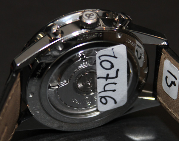 表圈是根據 1950 年代的潛水表表圈設計的。通常像這樣的手表會有測速儀式表圈,我很高興它沒有。不幸的是,潛水式表圈僅用于外觀并提供另一個小時/分鐘刻度。它不旋轉。這沒什么大不了的,但在我看來,有一個移動的邊框會很棒。表盤的易讀性非常好,指針的長度也恰到好處。腕表內部搭載瑞士ETA 2894自動計時機芯。Bell & Ross 保留了日期,但去掉了 12 小時計時盤,使其成為計時長達 30 分鐘的雙孔計時碼表。這是一個非常干凈和有吸引力的表盤,對我來說黑色看起來很完美(類似手表的其他非“運動”版本也有銀色表盤)。手表的背面是一個展覽底蓋窗口。