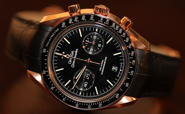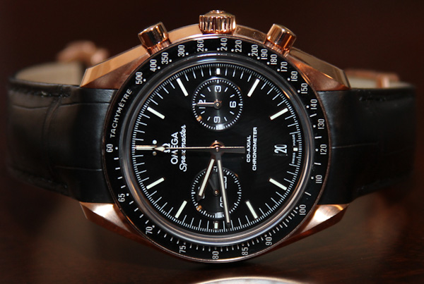 在我審查這款歐米茄手表的過程中發(fā)生了一些非常獨特的事情。歐米茄決定他們要更換超霸同軸計時腕表黃金版的表盤。這導致我發(fā)布評論的時間很長,因為我想展示零售版。18k 橙金版本最初選擇的表盤是陶瓷表盤。歐米茄隨后 – 可能是正確的 – 決定搭配黑色琺瑯表盤。我相信黑色琺瑯表盤是超霸同軸計時碼表的鉑金表殼版本的標準配置,歐米茄認為??它也是黃金版本的不錯選擇。琺瑯表盤版本的表圈也不同。在對這兩款手表進行審查后,我決定在本文中為您提供兩者的圖片。據(jù)我所知,陶瓷表盤版本并不是每款都可以在市場上買到——但讓您看看“可能是什么”對您有好處。再次請注意,這款超霸同軸計時碼表的零售版只有黑色琺瑯表盤。