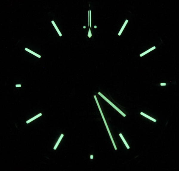 Lume 應用程序很棒。考慮到 lume 條有多薄,這實際上讓我感到驚訝。盡管如此,SuperLumiNova 的應用是一致且厚實的,使手表在弱光條件下也能看時。在我看來,針形指針和時標具有視覺和功能美感。