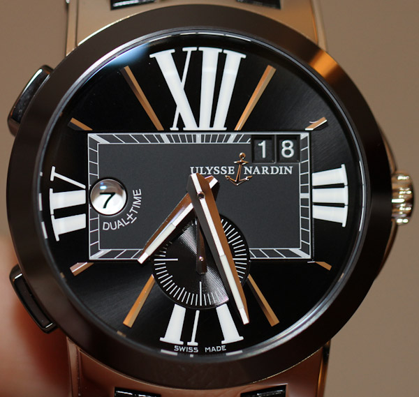 那么雙地時間功能呢?Ulysse Nardin 顯然早在 1996 年就發布了這個系統,它仍然是該品牌制造的強大模塊。這款手表內部裝有 UN-24 自動機芯。這是由經過改裝的瑞士ETA 2892 自動機芯組成。它上面是一個特殊的雅典表模塊,增加了一個大日期指示器和第二時區。UN-24 給我留下深刻印象的有兩點。首先,機芯運作非常順暢。您會感覺到很久以前運動中的所有問題都解決了,并且進行調整時感覺安全且受控。有時運動感覺好像它們幾乎沒有工作并且開發很匆忙 – 但不是在這里。