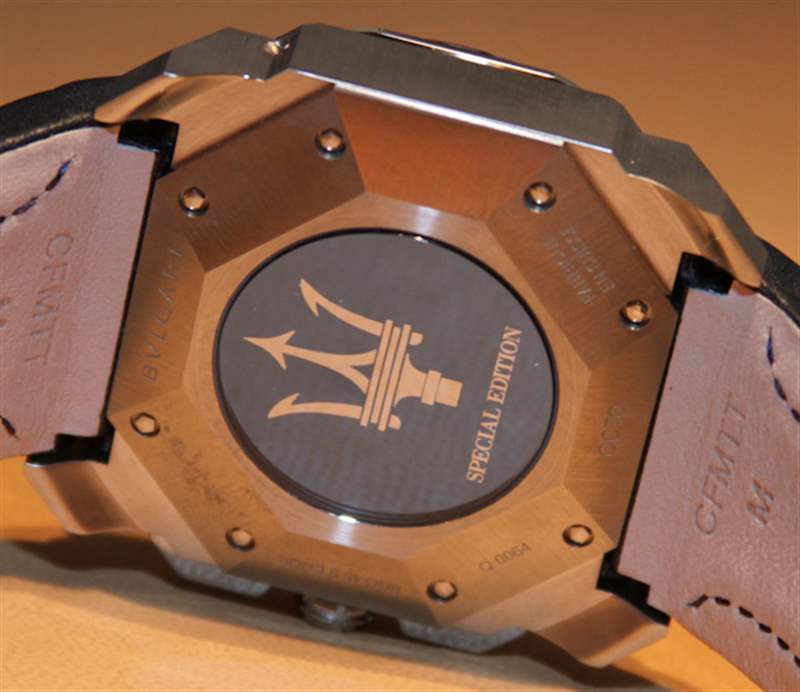 Buglari為瑪莎拉蒂特別版 Octo 手表的表盤上沒有瑪莎拉蒂品牌這一事實感到非常自豪。把這塊表翻過來,你會看到著名的三叉戟標志,但“瑪莎拉蒂”這個詞并沒有出現(xiàn)在手表本身的任何地方。這很有趣,也許是明智的。