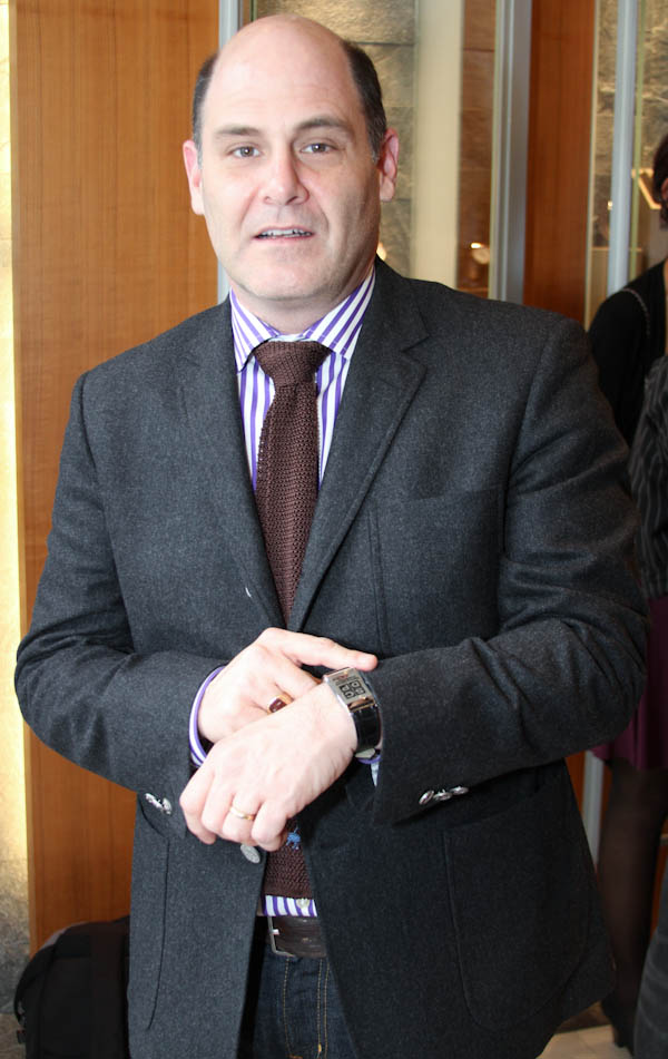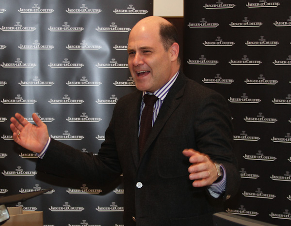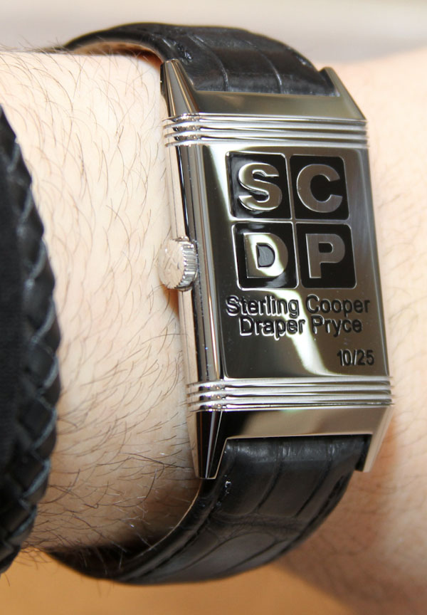 說到道具,我正在和維納交談,因為他戴著一塊手表,從某種意義上說,它是現(xiàn)實生活中的《廣告狂人》道具。積家(Jaeger-LeCoultre)與該劇合作制作了 25 枚 Reverso 翻轉腕表的限量版,意在呈現(xiàn)真實故事中的景象。Mad for Reverso 以 Grande Reverso Ultra-Thin 1931 Tribute 手表為基礎,在底蓋上刻有 Sterling Cooper Draper Pryce (SCDP) 標志的特殊雕刻(當然可以翻過來)。我在這里首次亮相 Jaeger-LeCoultre Mad about Reverso 腕表。我認為手表的技術名稱是 Jaeger-LeCoultre Grande Reverso Ultra-Thin Tribute to Mad Men “Mad for Reverso” 手表。有一些不錯的瑣事給你。