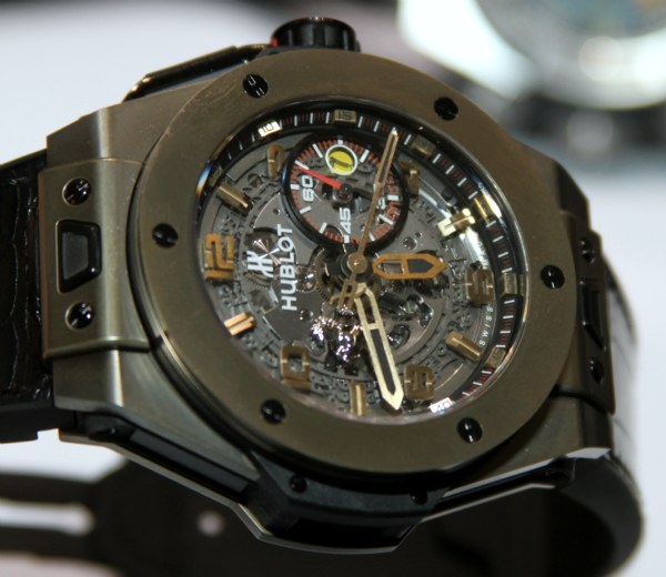 首先,Hublot 將提供 Big Bang Ferrari 鈦金屬或 Magic Gold 手表。我在這里更詳細地介紹了后一種材料。看到 Big Bang 法拉利的 Magic Gold 版本是我第一次親自檢查材料。宇舶 (Hublot) 剛剛在巴塞爾表展首次亮相時勉強及時完成表殼。陶瓷金混合材料很有趣。它當然是光滑的,但比普通黃金更暗。它也有輕微的灰綠色調。我有一種感覺 Hublot 會稍微調整顏色。即使他們不這樣做,這也是他們以前從未提供過的新材料和顏色。它的耐刮擦性也是黃金的兩倍多。異國情調的材料和 Magic Gold 等新材料是鐘表內含物,是 Biver 產品戰略的基石。廣告留言廣告信息結束
