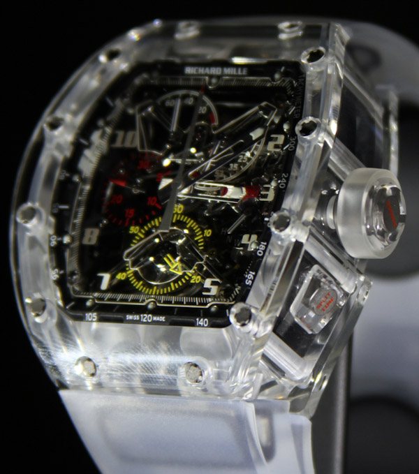 挫敗感確實(shí)與所涉及的時(shí)間以及加工過程中藍(lán)寶石水晶的脆性有關(guān)。它經(jīng)常斷裂——尤其是在上面鉆了螺絲孔的時(shí)候??紤]到用于將外殼夾在一起的所有螺釘,這對(duì)于 RM 056 來說尤其是一個(gè)問題。它們有很多,每個(gè)孔都需要鉆孔,并且有可能使外殼破裂。從好的方面來說,我從業(yè)內(nèi)人士那里聽說,一旦藍(lán)寶石零件經(jīng)過加工,它們就會(huì)非常堅(jiān)硬。所以機(jī)加工過程是有風(fēng)險(xiǎn)的,但在那之后表殼就會(huì)足夠堅(jiān)固——只是不要猛擊它,否則它會(huì)碎裂。您只能使用 G-Shock 來做到這一點(diǎn)。