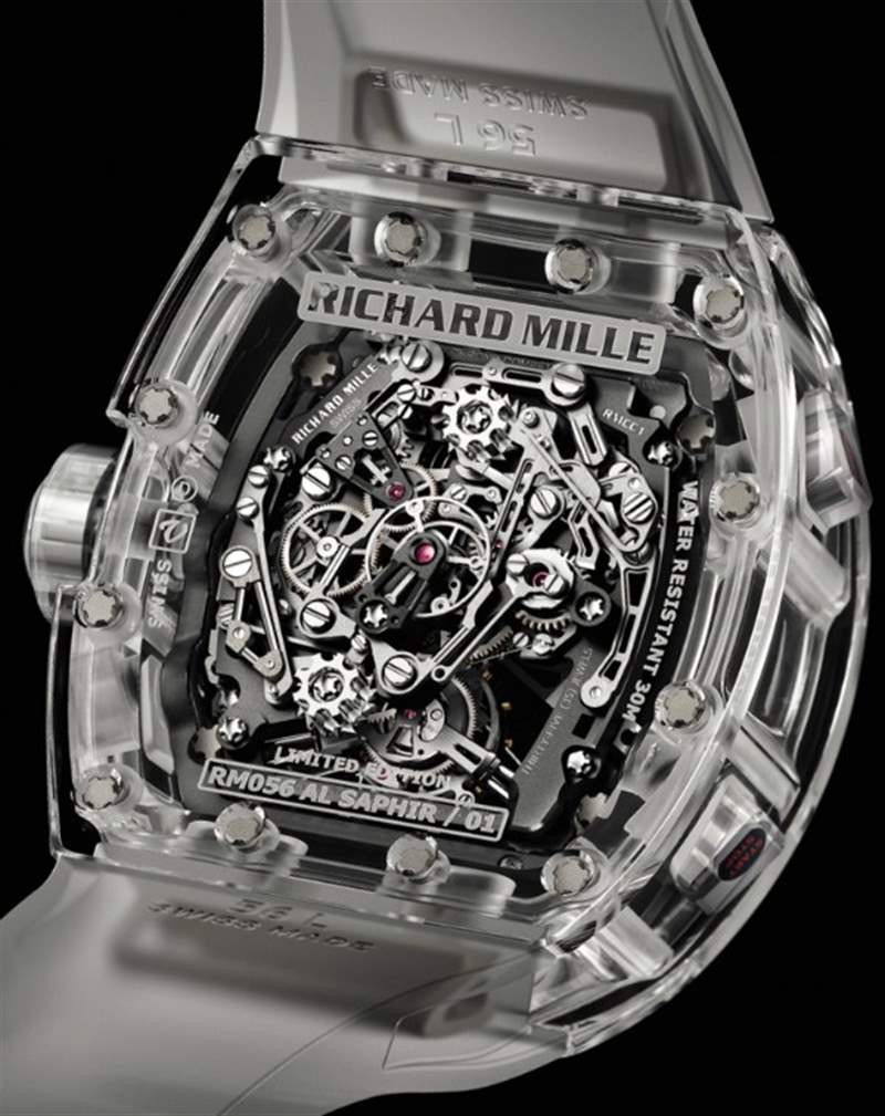毫無疑問,它很酷。它也非常昂貴,并且是最重要的展示品。這款Richard Mille全新高度限量版腕表為 RM 056,采用全藍(lán)寶石水晶表殼。它在視覺上非常吸引人,成本僅為 1,650,000 美元??赡芨菀讓?duì)價(jià)格一笑置之而不是生氣。