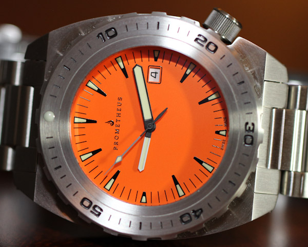 表盤很好,但可能是我唯一建議普羅米修斯改進的地方。在我看來,他們感覺有點平淡。這尤其是由于表盤的深度以及表殼又大又厚的緣故。還有其他版本的表盤帶有應用的小時指示器,可能感覺不那么平坦。這沒什么大不了的,但值得一提。