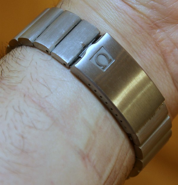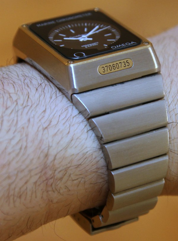 我的理解是,歐米茄只為這款手表發布了一種表殼樣式,它是鋼制的,帶有 14k 金表圈和序列號銘牌。表殼高約 49 毫米,寬約 32.5 毫米。它有 12 毫米厚,??整體感覺莊嚴但手腕上并不笨重。以今天的標準來看有點復古,錐形單鏈式手鏈和整體設計在我看來確實經久不衰。我覺得有趣的是,序列號如此顯眼地顯示在表殼上。另一個設計特點是讓它感覺更像是一件重要的樂器,而不是正式的鐘表。這在當時是一款嚴肅的極客手表。