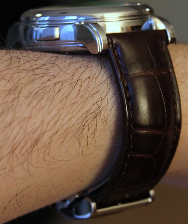 表盤(pán)左側(cè)有晝/夜顯示,右側(cè)有日期輪。對(duì)于對(duì)稱(chēng)性,萬(wàn)寶龍使用類(lèi)似形狀的窗口,但我不太關(guān)心“打開(kāi)”的日期窗口。由于上下日期部分位于表盤(pán)下方,它看起來(lái)也不壯觀 – 盡管這實(shí)際上有助于將注意力集中在實(shí)際日期上。雖然時(shí)間表盤(pán)兩側(cè)的窗口看起來(lái)不錯(cuò),但我有一種感覺(jué),萬(wàn)寶龍可能會(huì)在未來(lái)幾代手表中修改或拋光設(shè)計(jì)。