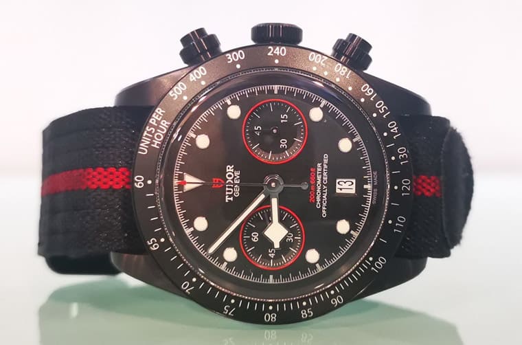 ▲帝舵打造的Black Bay Chrono擁有黑鋼表殼,加上紅色細節點綴,不過手表并無市售,只提供給車隊選手佩戴。Source:fratellowatches