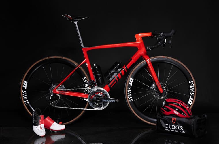 ▲帝舵自行車隊的比賽用車由瑞士頂級自行車品牌BMC制作,鮮紅的車架非常大膽搶眼。