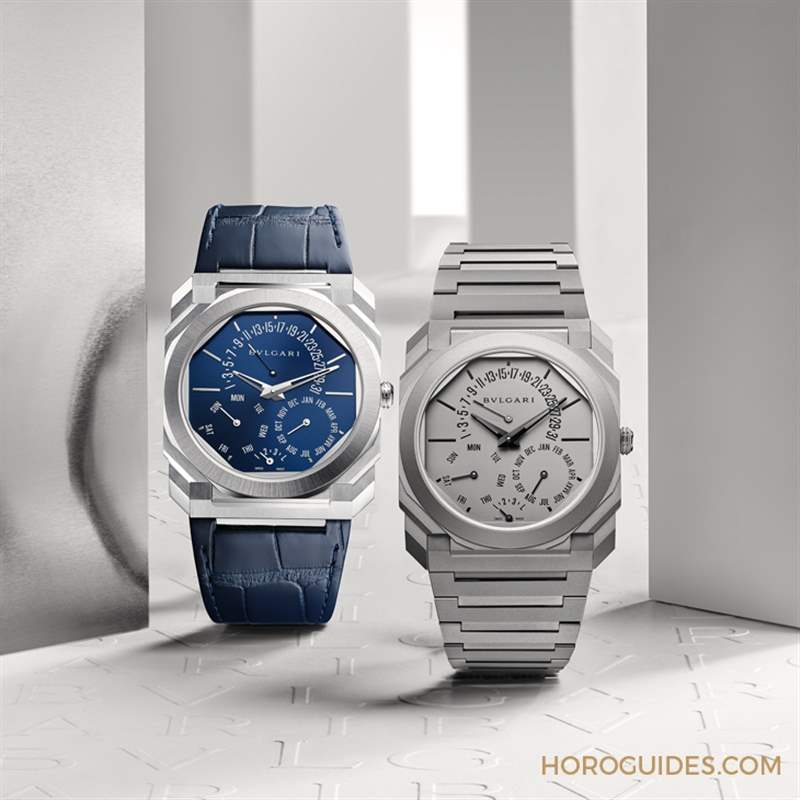 有史以來最薄的萬年歷腕表!表徑40mm、表殼厚度5.8mm,BVLGARI Octo Finissimo Perpetual Calendar超薄萬年歷腕表以一種近乎不可思議的平面化面貌,又一次將Octo Finissimo系列推上技術巔峰,成為此系列自2014年面世以來第7度打破超薄世界紀錄的強勢之作。