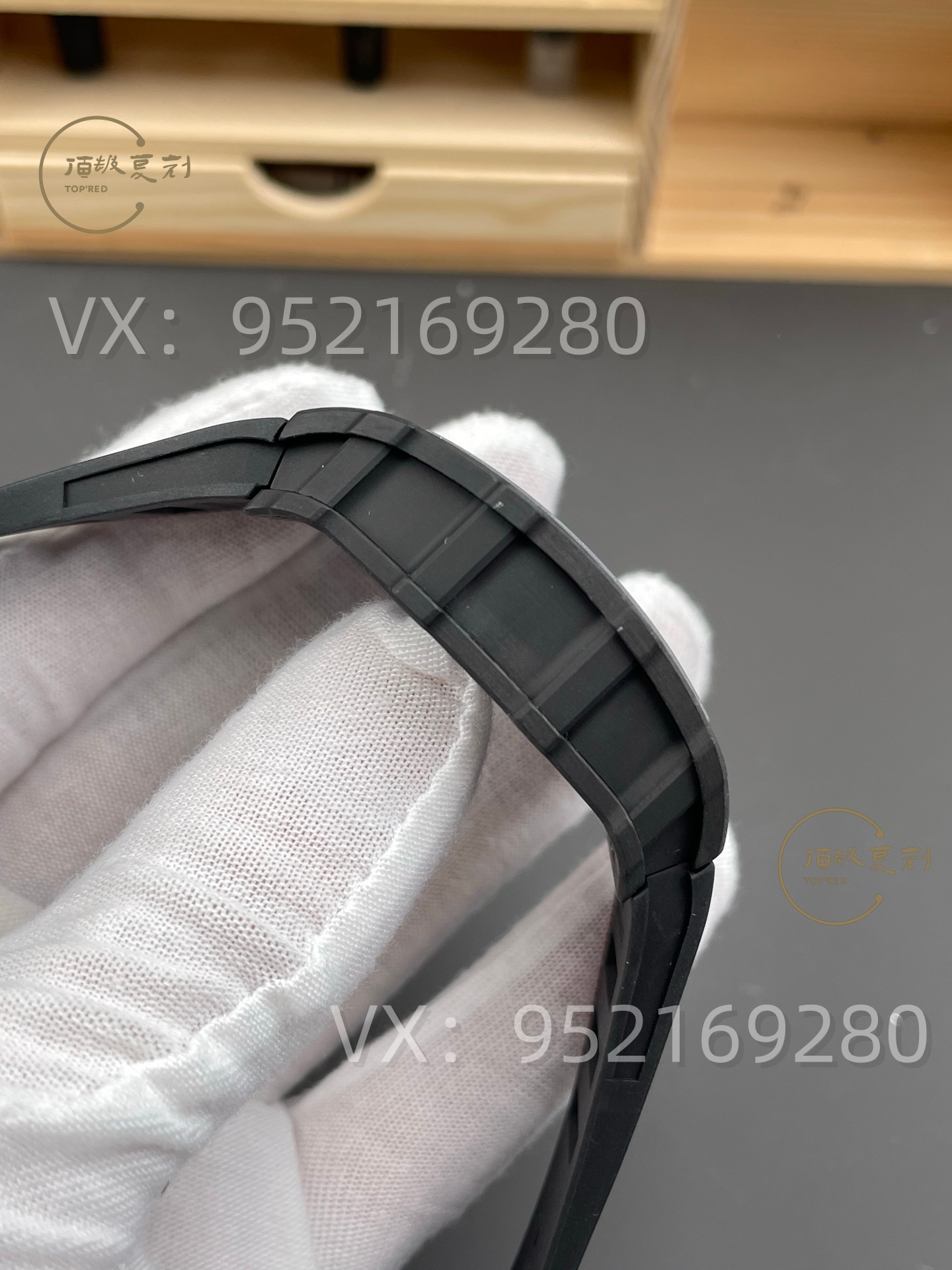首先,外觀還原度極高。表殼采用MTPT碳纖維材質,紋理清晰、質感輕盈,與原版一致。雙面藍寶石鏡面均鍍有藍膜,通透性極佳,且微微彎曲的弧度精準復刻了RM系列標志性的立體視覺效果。底蓋刻字清晰工整,雖與動輒數萬元的改裝版本相比略遜毫厘,但考慮到價格差距高達十倍,這樣的細節表現已屬超值。