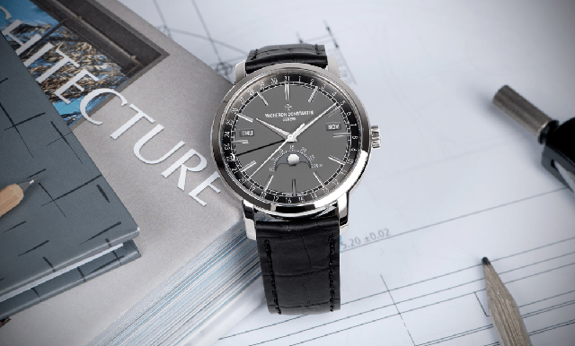 VACHERON CONSTANTIN江詩丹頓Traditionnelle全日歷腕表繼先前亮相過的18K玫瑰金版本,現(xiàn)全新推出天鵝絨質(zhì)感暗灰色面盤新作,白金材質(zhì)配備階梯式圓形表殼和表耳、凹槽底蓋、軌道式分鐘刻度圈以及太妃式時針和分針,并保留了江詩丹頓獨(dú)創(chuàng)的標(biāo)志性日歷顯示。全日歷復(fù)雜功能也稱作三重日歷顯示,可同時顯示日期、星期和月份,并具備月齡和月相顯示。