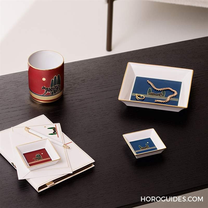 1914年,美洲豹首次以豹紋腕表造型亮相,旋即成為卡地亞典范之作。三年后,美洲豹化抽象為具象,在1917年路易·卡地亞Louis Cartier饋贈貞·杜桑Jeanne Toussaint的化妝盒上,現身于兩顆柏樹之間。美洲豹自誕生以來,不斷煥發新貌。如今,美洲豹圖案在黑色、綠色、藍色和紅色的繽紛對比中得以精彩演繹。各款托盤和花瓶等陶瓷精致擺件均盡顯風格。