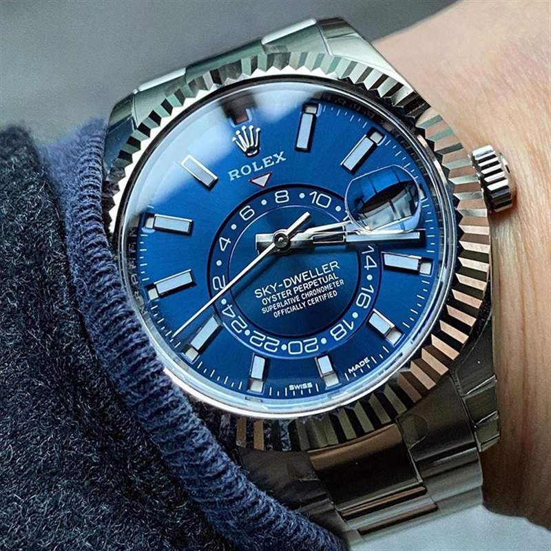 John(慎昌鐘表協理):我自己最想買的話,應該會是勞力士的326934藍面,勞力士這只年歷表款當初一推出的時候全部都是K金的,后期它推出不銹鋼表款價位大概在60多萬左右,我覺得是非常物超所值,為什么會講這樣就是說,年歷的機芯是非常復雜,勞力士又把它設計成用外圈去控制所有的操作,我覺得這個在業界應該算是非常有獨特性,外圈又是坑紋式的外圈,又勞力士的風格,藍面,所以我覺得這個表非常值得入手。