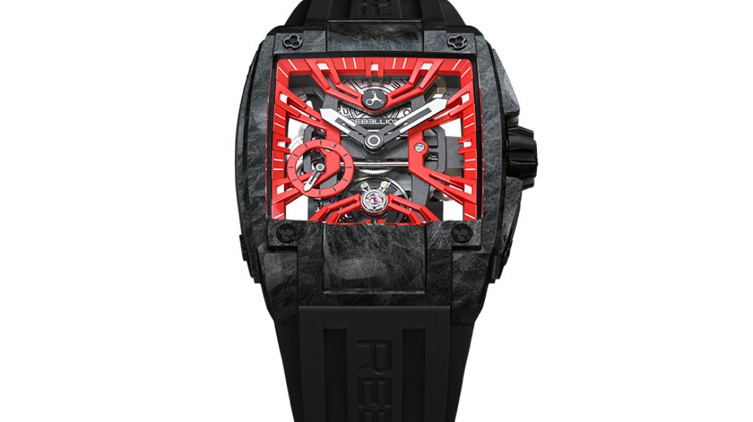 與所有Rebellion腕表一樣,RE-Volt鏤空GTWC搭配堅(jiān)固而舒適的黑色硫化橡膠表帶,搭配折疊式表扣。