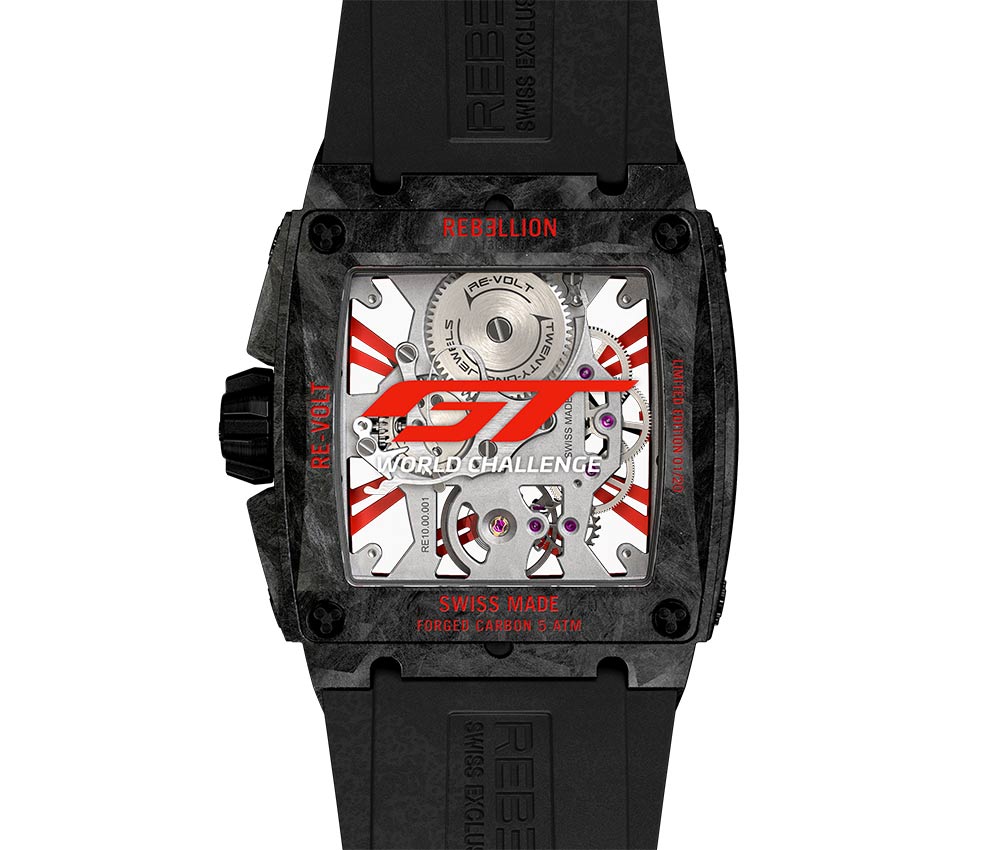 追隨21 GMT和幽靈計(jì)時(shí)碼表GTWC限量系列的腳步,Rebellion在7月29日至8月1日在比利時(shí)舉行的24小時(shí)Spa期間推出了其RE-Volt鏤空GTWC模型。圣今年。這個(gè)瑞士品牌是這項(xiàng)傳奇賽事的官方計(jì)時(shí)器,也是由 AWS 提供支持的組織者 GT World Challenge Europe 的合作伙伴,以其對賽車的熱情激發(fā)了這款新穎的紅黑著裝變化。與該系列中的其他參考一樣,這款手表的鏤空機(jī)芯由一對涂有發(fā)光材料的時(shí)針和分針懸停。表殼兩側(cè)的防反光藍(lán)寶石水晶玻璃表鏡可讓光線自由流通。這種分層機(jī)械結(jié)構(gòu)的所有組件都完美地居中,同時(shí)襯托出手表獨(dú)一無二的風(fēng)格。該裝置由鍛造碳纖維制成的矩形表殼(40.35 x 38.5 x 13.5 mm)保護(hù)。該表殼采用隨機(jī)大理石花紋設(shè)計(jì)。因此,每件作品都與其他作品不同。