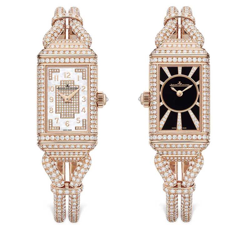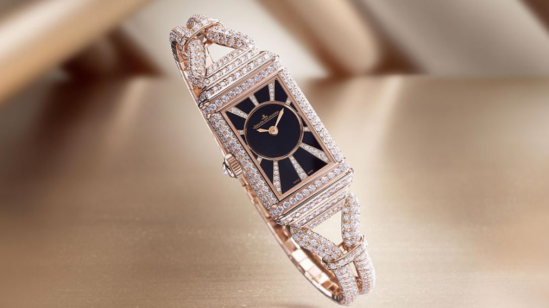 這款時(shí)計(jì)保留了用于將手表連接到手腕的原始黑色繩索設(shè)計(jì),同時(shí)增加了一絲高級(jí)珠寶,因?yàn)槿嵝员礞湰F(xiàn)在由玫瑰金制成并襯有鉆石,表耳和表殼也是如此。腕表尺寸為36.3×18毫米,表冠飾有寶石,搭載積家844型機(jī)芯。其手動(dòng)上鏈機(jī)械機(jī)芯能夠?qū)r(shí)針和分針雙向旋轉(zhuǎn),提供38小時(shí)的動(dòng)力儲(chǔ)存。