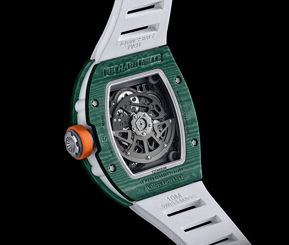 白色橡膠表帶進一步彰顯了 RM 029 勒芒 Automatique Classic 的運動個性。