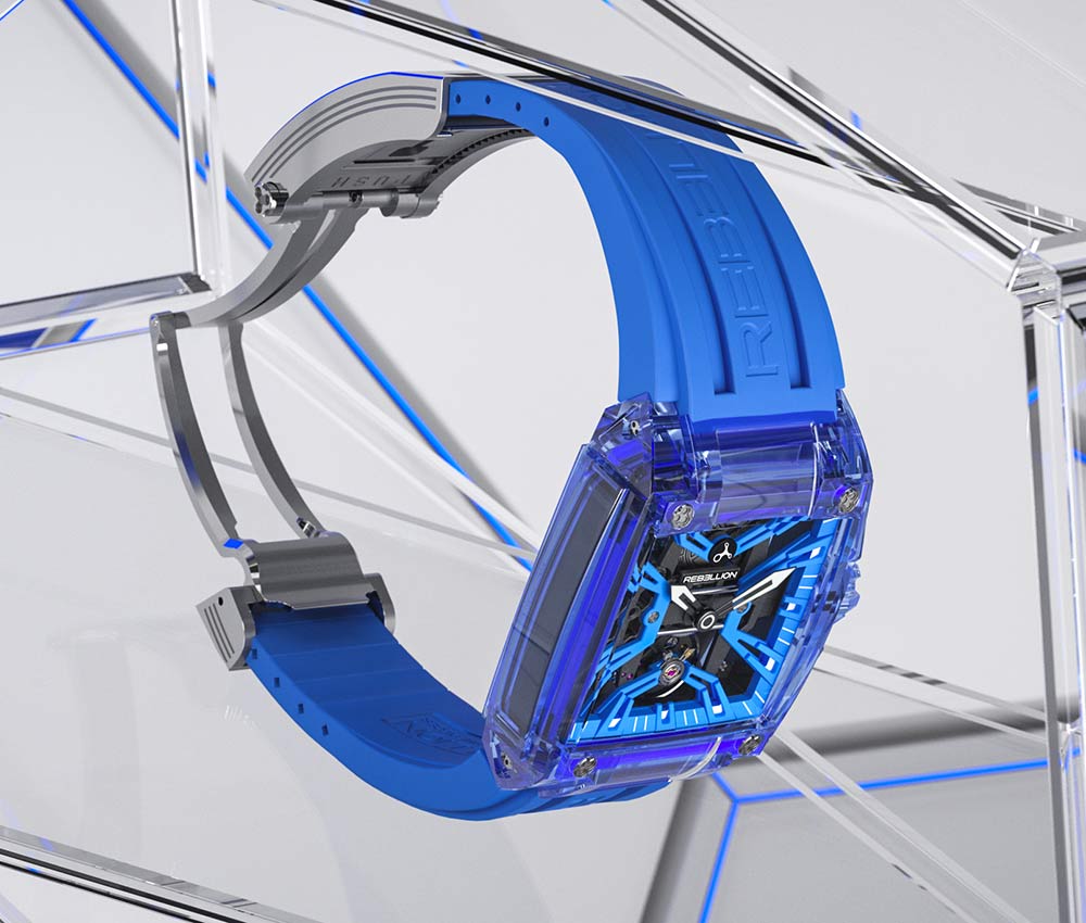 所有RE-Volt藍寶石腕表均佩戴在大型硫化橡膠表帶上,其顏色與表殼完美匹配。