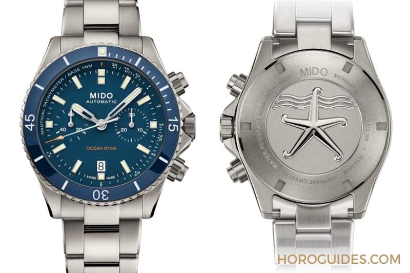 海洋之星計時碼表搭載MIDO Caliber 60自動上鏈機芯,提供高達60小時的動力儲存。后底蓋則以霧面浮雕處理的海洋之星系列專屬標志-海星圖紋,呼應海洋的設計底蘊。防水深度高達200米,為追求速度和時尚的表迷設計,更為夏天精彩刺激的水上賽事拉開序幕。另推出黑色類鉆碳DLC特別版搭配黑色橡膠帶,并附贈快拆式黑色高科技織物表帶。